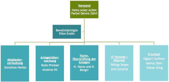 Das sind insbesondere der Vorstand und der Aufsichtsrat, die wir vorstellen möchten, wie das folgende Organigramm zeigt. Darüber hinaus hat sich mittlerweile ein Kreis von ehrenamtlichen Mitstreitern etabliert, die ihre Erfahrungen, Netzwerke und Talente einbringen, um den Vorstand von Aufgaben zu entlasten bzw. notwendige Themengebiete eigenverantwortlich zu bearbeiten:
